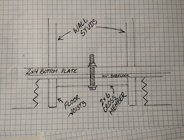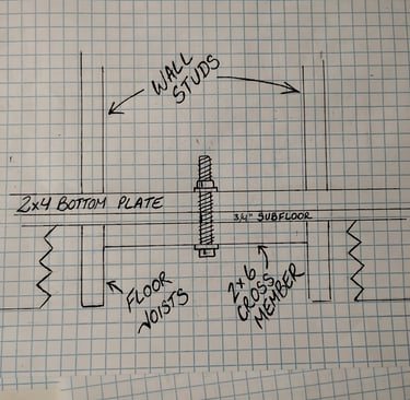 Our walls aren't just tacked to the floor-they are bolted through it. Using a 2x6 treated crossmember as an anchor point, our bolt through system creates a permanent mechanical bond between the frame and the floor, ensuring your building stays square and true.