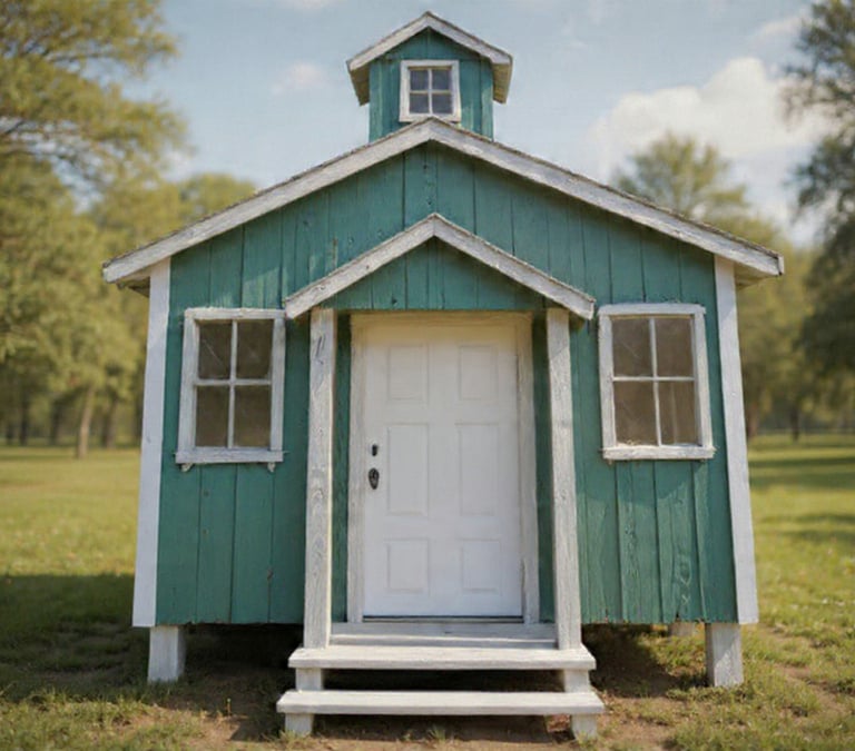 With a little extra material and a bit of imagination a basic utility shed can transform into a quaint schoolhouse, the perfect touch for your back yard.